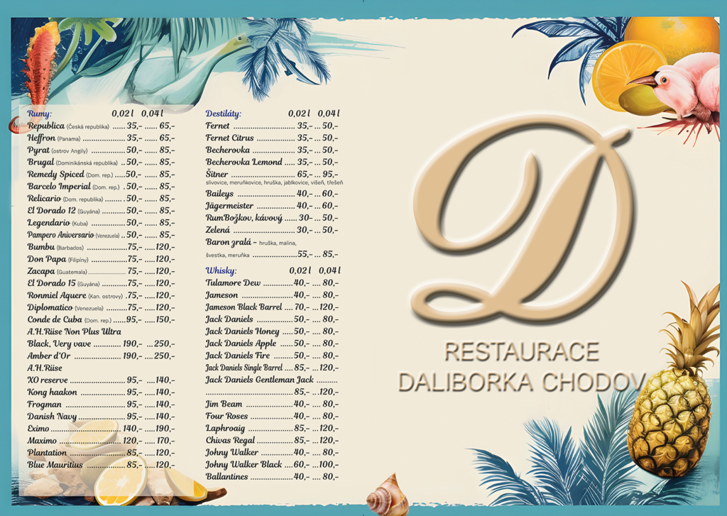 restaurace a pension DALIBORKA Chodov – Letní menu 2025